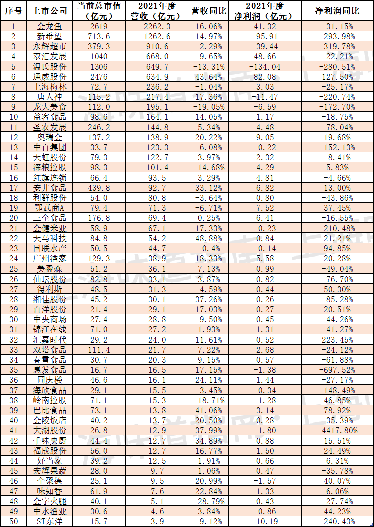 [ 導讀 ] “預制菜”上市企業營收50強新鮮出爐~