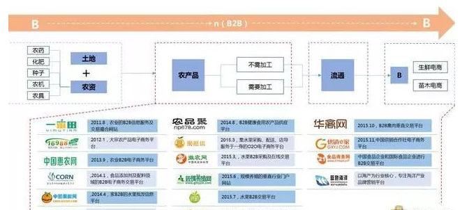 3、B2B模式(即商家到商家的模式)。這類模式是商家到農戶或一級批發市場集中采購農產品然后分發配送給中小農產品經銷商的行為。這類模式主要是為中小農產品批發或零售商提供便利,節省其采購和運輸成本。