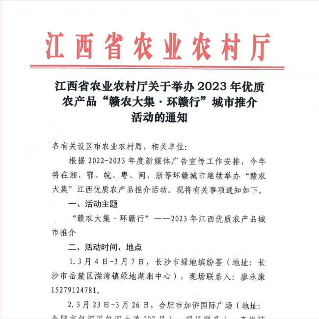 品牌強農!2023年優質農產品“贛農大集·環贛行”城市推介活動拉開序幕