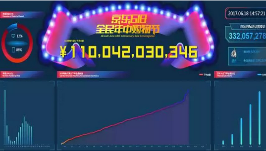 京東數據顯示,截至6月18日15點,在始于6月1日的京東618全民年中購物節期間,京東商城累計下單金額已超1100億元(行業口徑),要完成這些商品的配送,京東的快遞員需要走超過3億公里。