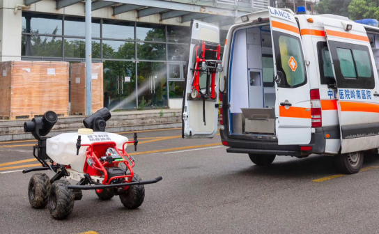 不同于農田作業環境,城市環境復雜多樣,在一些窄巷、街道、小區、市場、醫院,無人機無法發揮其優勢,而無人車則可以靈活進入進行消殺;只有在一些大型的廣場、工廠,無人機消殺的效率才能更好地體現。而無人機+無人車組合的方式,能更好地方便城市防疫服務,提高消殺效率,減少作業風險。