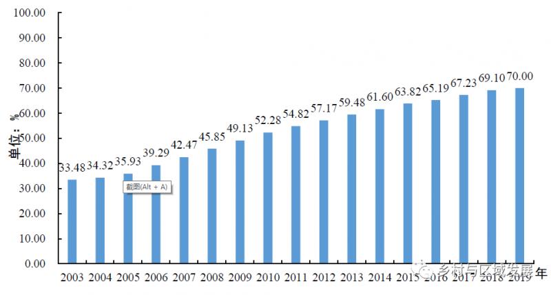 圖1  2003-2019年全國農作物耕種收綜合機械化率變化圖