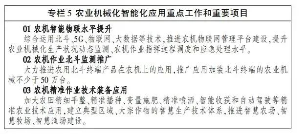 近期,農(nóng)業(yè)農(nóng)村部印發(fā)《“十四五”全國農(nóng)業(yè)機(jī)械化發(fā)展規(guī)劃》(以下簡稱《規(guī)劃》),為我國“十四五”期間農(nóng)業(yè)機(jī)械化的發(fā)展方向定下總基調(diào)。其中,在《規(guī)劃》的第八章節(jié)中明確提出要從以下三方面入手,加快推動(dòng)農(nóng)業(yè)機(jī)械化智能化、綠色化。