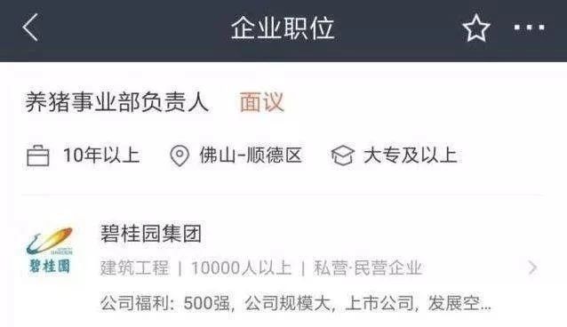 2018年5月,碧桂園在微信公眾號上發布消息,招聘“養豬事業部負責人”,引發大量圍觀。