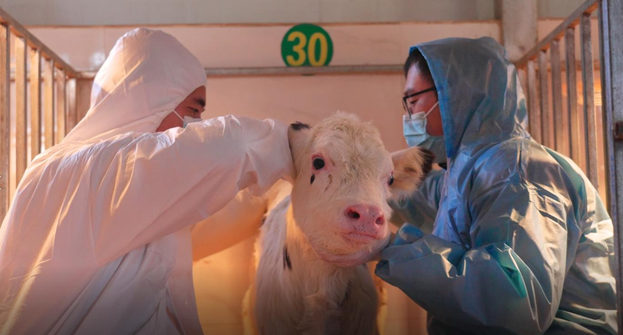 春節前夕,由西北農林科技大學奶牛種業創新團隊培育的“克隆奶牛”在寧夏靈武市生出,實現了千里之外的“超級奶牛”在異地重生。這是國內首次采用體細胞克隆技術對現存群體中的百噸優良個體進行種質復原保存,并用于良種奶牛高效繁育,開啟了體細胞克隆技術在良種奶牛培育中擔當核心和關鍵角色的新紀元。
