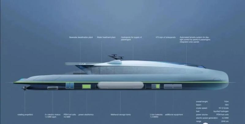 這種環保的精神甚至延伸到了船體建造本身。根據3deluxe工作室,船體材料可以由挪威和德國的一些使用可再生能源生產鋼鐵和鋁的先驅制造商供應,整個生產過程中減少碳排。