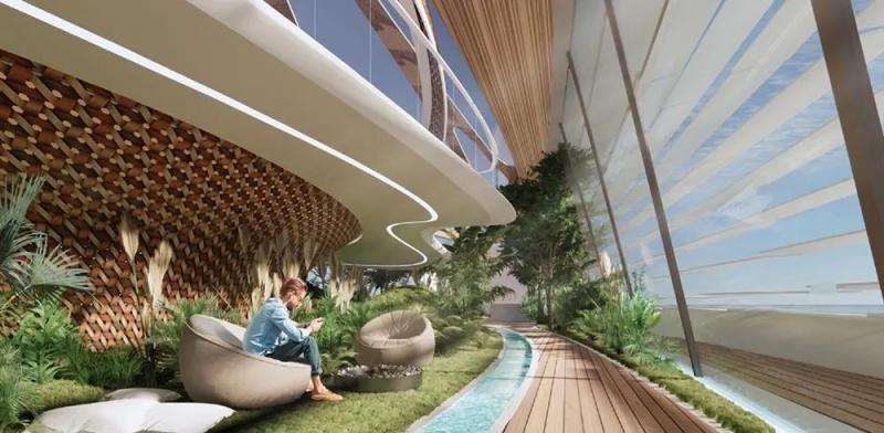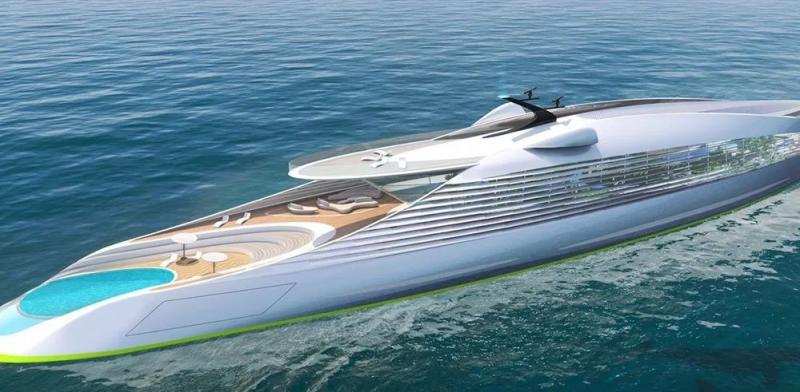 超級游艇VY.01本身看起來就像翠綠的植物一樣。3deluxe工作室表示,它配備了氫燃料電池系統和電力推進系統,可以在沒有二氧化碳排放、噪音和振動的情況下巡航。