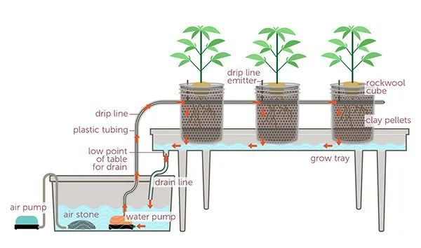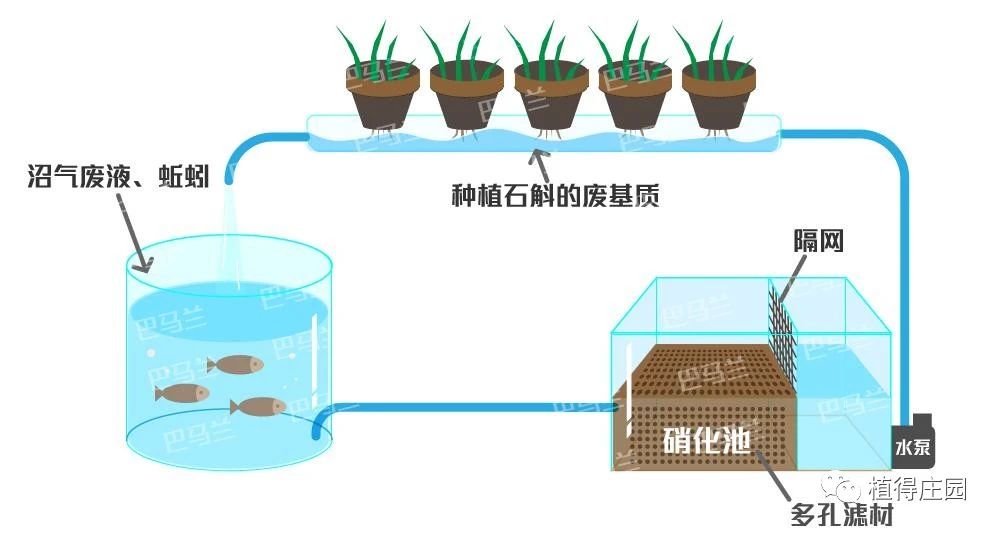 3.基質(zhì)栽培法:養(yǎng)殖水體直接與基質(zhì)培的灌溉系統(tǒng)連接,養(yǎng)殖區(qū)排放的廢液直接以滴管的方式循環(huán)至基質(zhì)槽或者栽培容器,經(jīng)由栽培基質(zhì)過(guò)濾后,又把廢水收集返回養(yǎng)殖水體,這種模式設(shè)計(jì)更為簡(jiǎn)單,用灌溉管直接連接種植槽或容器形成循環(huán)即可。大多用于瓜果等較為高大植物的基質(zhì)栽培,需注意的地方是,栽培基質(zhì)必須選質(zhì)如豌豆?fàn)畲笮〉牡[石或者陶粒,這些基質(zhì)濾化效果好,不會(huì)出現(xiàn)過(guò)濾超載而影響水循環(huán),不宜用普通無(wú)土栽培的珍珠巖、蛭石或廢菌糠基質(zhì),這些基質(zhì)因排水不好而容易導(dǎo)致系統(tǒng)的生態(tài)平衡破壞。
