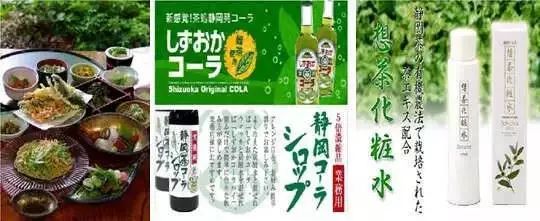除了比較普遍的綠茶甜品外,靜岡開發(fā)了獨(dú)有的綠茶料理,如煎茶做的茶鹽、茶葉蕎麥面、茶香飯等,提供綠茶料理的餐廳備受游客歡迎。此外還開發(fā)護(hù)膚品。