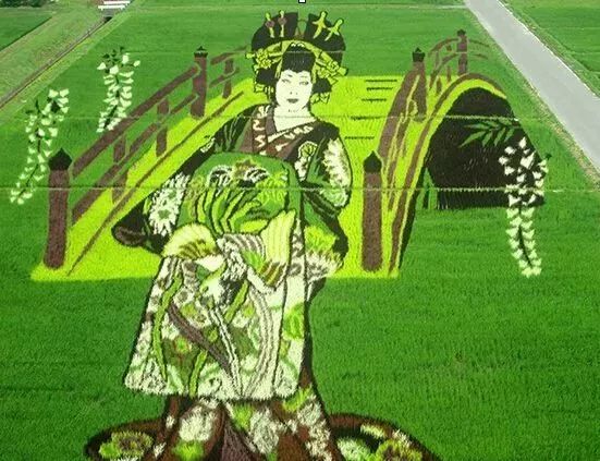 一個(gè) 2000多年水稻種植歷史的古村,1993年為振興農(nóng)業(yè),利用不同顏色、品種的水稻在15000平方米的田地上種出驚人的藝術(shù)作品;年游客量超過30萬人次,帶動(dòng)了稻田藝術(shù)在日本各縣的蔓延。每年4月藝術(shù)家設(shè)計(jì)圖案,在不同區(qū)域做上記號(hào),村民協(xié)作運(yùn)用不同品種的稻子播種,5月開始稻田不斷生長(zhǎng),圖案逐漸顯現(xiàn),每年7月是最佳觀賞季。