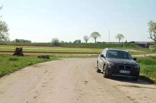 停在菜地邊的寶馬。