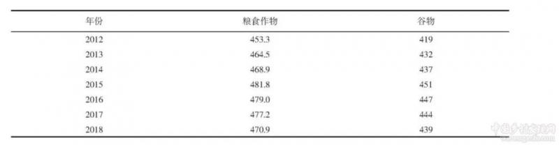 表1 我國(guó)人均糧食產(chǎn)量情況(2012~2018) (千克)