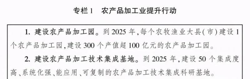 從上面發布的五年規劃任務目標可以看出,在鄉村特色產業發展,下一個五年,我國對于產業的發展還會持續采取有力的措施,除了壯大農產品加工業之外,到2025年,農產品加工業的營業收入額也會向32萬億元目標奮進。