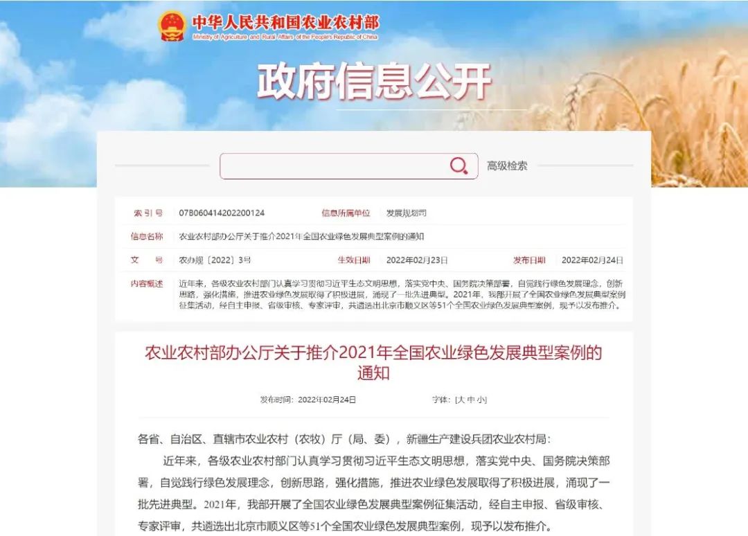 【名單】剛剛,2021年全國農業綠色發展典型案例發布!