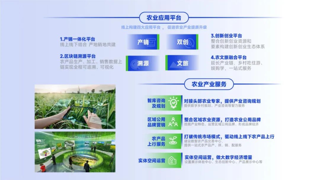 三個重點:一是抓產業,通過產業大數據、創新創業平臺、區域公用品牌營銷、農產品上行服務,賦予縣域農業產業發展新動能。二是強治理,推進黨建和村務管理智慧化,助力疫情防控、賦能綠色低碳環保。三是優服務,發展互聯網+教育、醫療、健康、養老信息服務、強化鄉村網絡文化陣地,縮小城鄉公共服務差距。