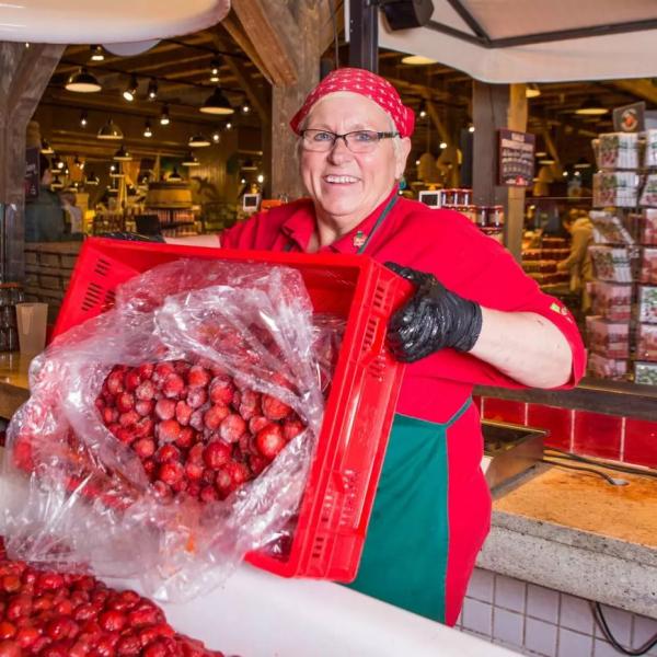 每年5-10月草莓鮮果采摘時,在園區外有300個草莓屋來售賣鮮果和他們自產的草莓系列產品,5個月可以銷售400多萬歐元。