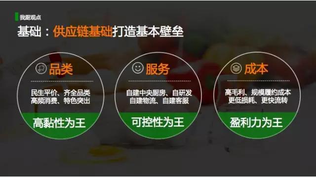 3 . 第三個坑:沒有勁敵也是個坑。每日優鮮CFO孫原表示,生鮮產業在原有線下業態,發展過程當中沒有勁敵,也是生鮮行業的大坑,因為沒有勁敵,所以在戰略上不創新,那么及使戰術上再勤奮、運營上再細致,也不可以彌補戰略不創新這個坑。