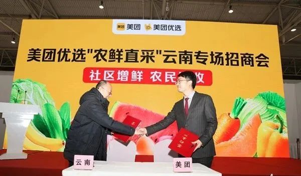 近日,美團優選啟動的“農鮮直采”計劃。根據云南省人民政府駐京辦和美團簽署的合作協議,雙方將利用搭建美團選品基地、美團供應鏈全品類展示等平臺,圍繞優質農產品出滇、美食消費扶貧、農村電商人才培養等各個方面展開合作。