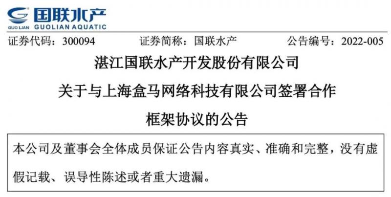1月4日,國聯水產披露向特定對象發行股票申請已獲深交所受理,當日公司股票漲停;1月11日晚間,國聯水產披露《關于與上海盒馬網絡科技有限公司簽署合作框架協議的公告》,此后,公司股票連續三個交易日漲停。