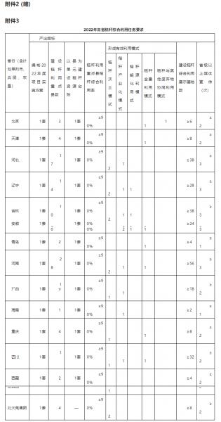 (一)壓實工作責任。2022年中央財政通過農業資源及生態保護補助資金對秸稈綜合利用工作給予支持,并作為約束性任務進行安排部署。各省農業農村部門要加強統籌協調,明確責任分工,細化工作安排,落實任務要求(見附件3)。各秸稈利用重點縣要加強組織推動,細化任務分解,實化工作舉措,扎實推進各項工作落實落地。加強與黑土地保護工程、東北黑土地保護性耕作等政策的銜接配合,推動政策同向用力、整體聯動。