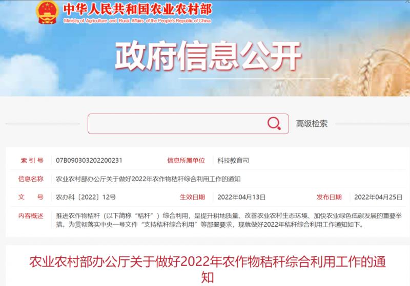 [ 導讀 ] 關于做好2022年農作物秸稈綜合利用工作的通知。