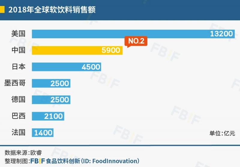 實際上,中國的飲料市場是一個千億級的紅海。根據Euromonitor 的2018年全球軟飲料銷售額數據,中國達到了5900億元,僅次于美國。