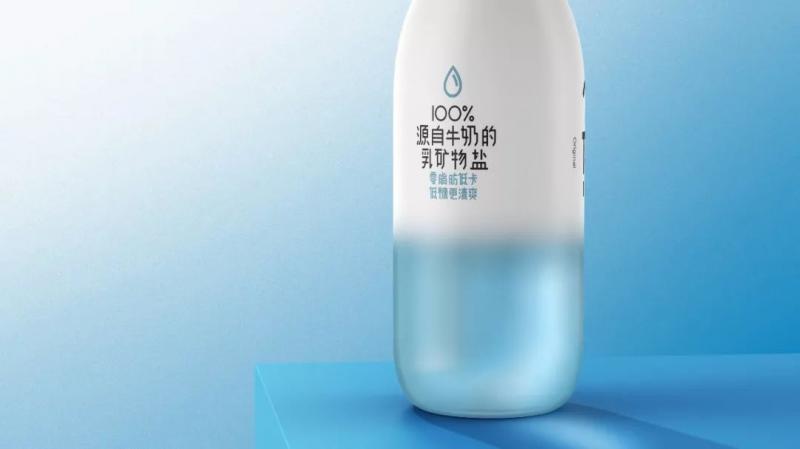 我們了解到,在設計啟動前,伊然項目團隊就給出了清晰的需求簡報,即傳遞一個“從牛奶里提取的乳礦”概念的產品,要與牛奶有天然的關聯。我們看到伊然的極簡的瓶型設計,類似于傳統的玻璃牛奶瓶,非常圓潤,這是與牛奶的第一個關聯。