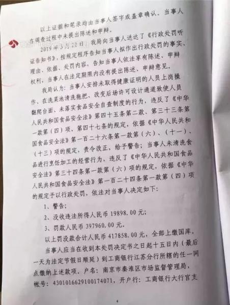 違法所得主要是指,該店承認在2019年2月20日至3月14日期間,存在將花菜、四季豆和金針菇三種蔬菜未經清洗,就制作菜品進行銷售,貨值金額共計19898元。而罰款397960元,是按照《食品安全法》最高20倍予以罰款,屬于頂格處罰
