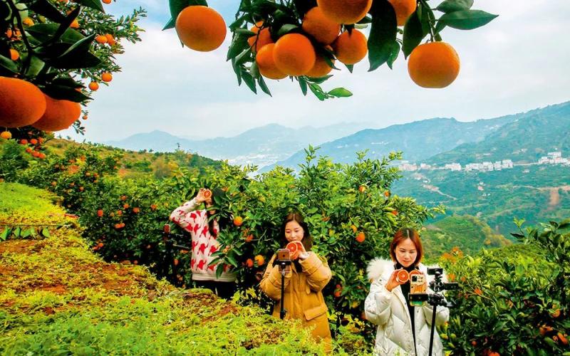 ▲ 2020年12月4日,湖北秭歸的電商主播在郭家壩鎮擂鼓臺村的生態柑橘園直播推介紅肉臍橙 王罡攝