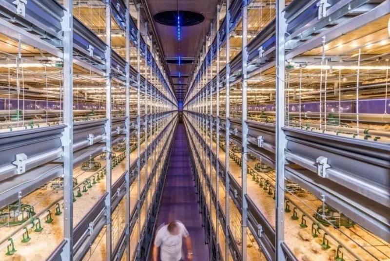 一個(gè)雞場(chǎng)能同時(shí)飼養(yǎng)15萬只雞,幾乎完全是自動(dòng)化飼養(yǎng)。