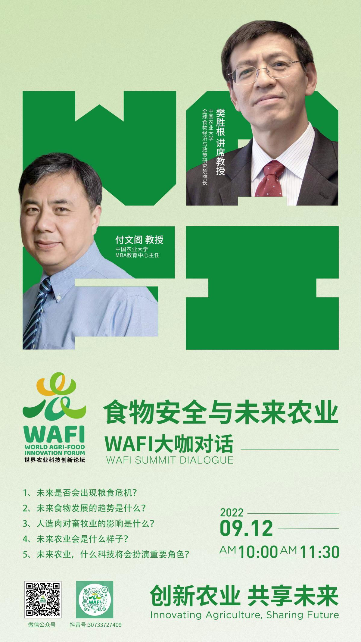 [ 導(dǎo)讀 ] WAFI大咖對(duì)話直播預(yù)告(9月12日) | 樊勝根?付文閣:食品安全與未來(lái)農(nóng)業(yè)