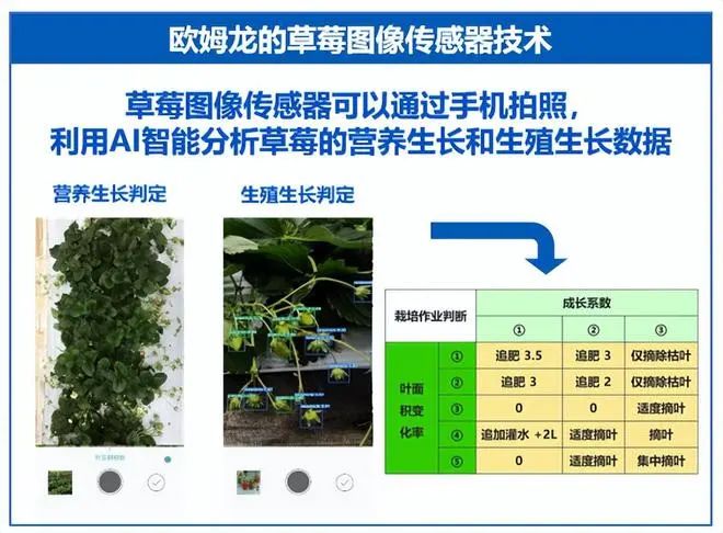 歐姆龍智慧農業的核心思路和關鍵技術是感知、控制、算法。歐姆龍對環境、氣候、土壤等算法,生成一套標準感知和控制。比如在農業機器人在采摘、控制等方面,通過Ai技術,去代替相關的人為的判斷,提升判斷合理性和正確性,從而使得控制更加科學。