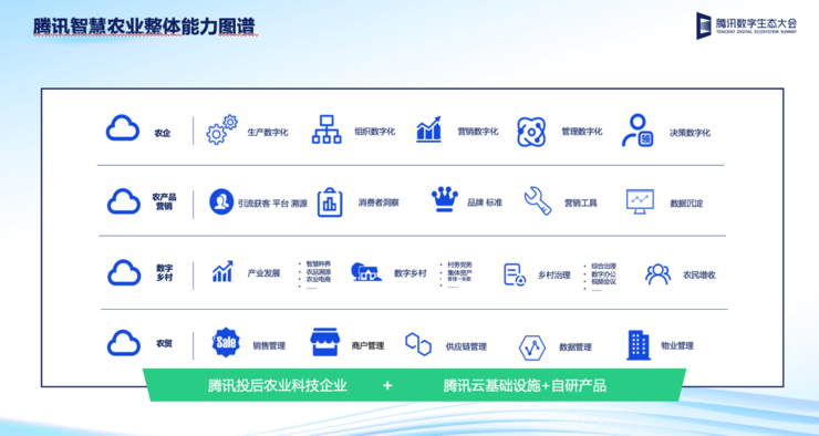 具體來說,騰訊云已形成由投后農業科技企業與騰訊云基礎社會和自研產品組成的核心產品矩陣。