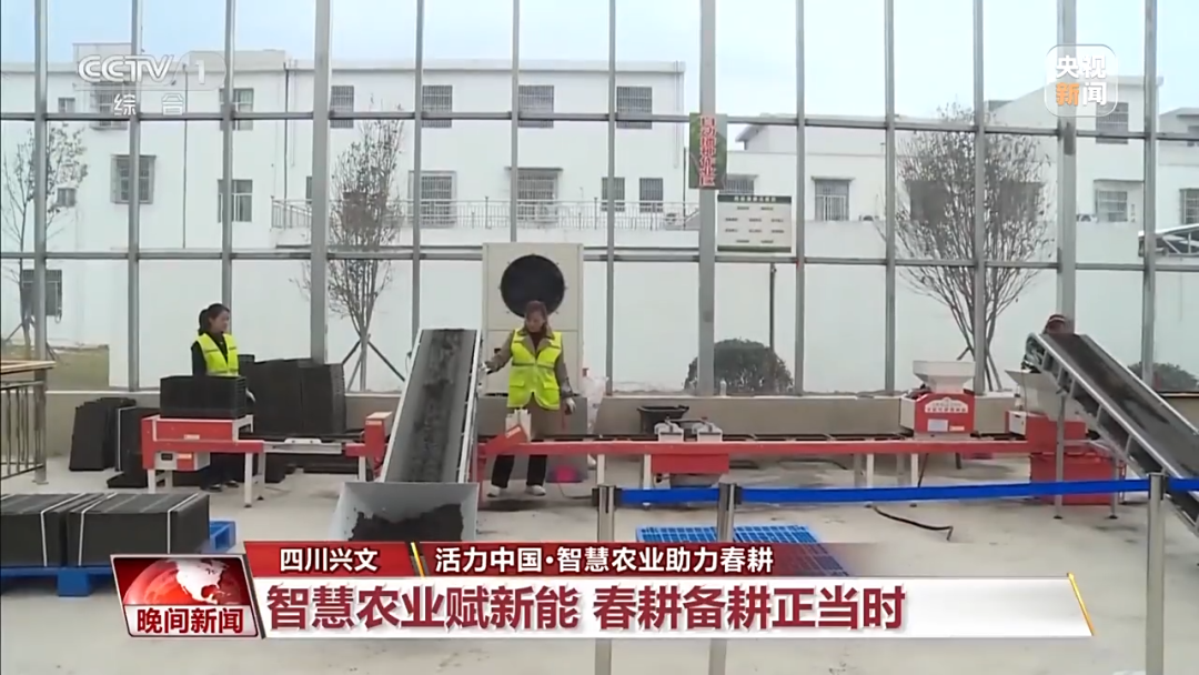 在四川宜賓市興文縣現代智慧農業產業園區,全自動水稻育秧播種機正在進行流水作業,遠程控制設備會自動給秧苗加濕、降溫、施肥,8-14天就可完成一個育秧周期,通過這里的7臺循環運動式育苗設備,980平方米潮汐灌溉式苗床,每批次育秧可移栽秧苗1100畝。