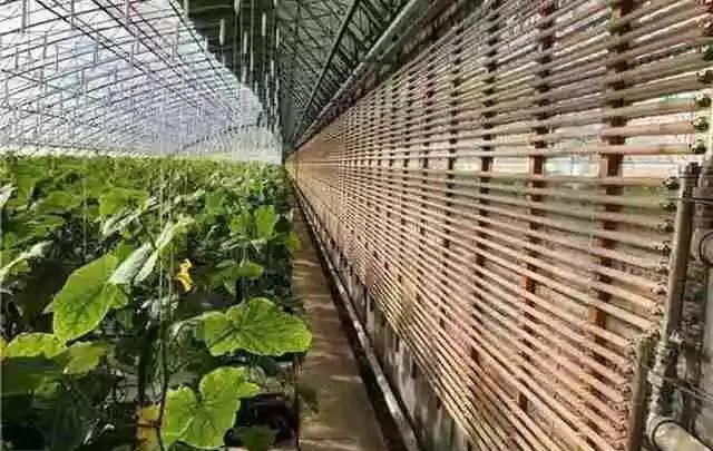 Δ大棚用空氣源熱泵加溫,黃瓜長勢良好