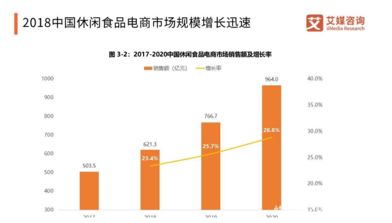 在這個風口之中,休閑食品電商例如良品鋪子、百味園等休閑電商也迎來了新的一波浪潮。據iiMedia Research(艾媒咨詢)數據顯示 2018年中國休閑食品電商市場銷售額為621.3億元,增速達到23.4%。2018年中國網上零售總額..